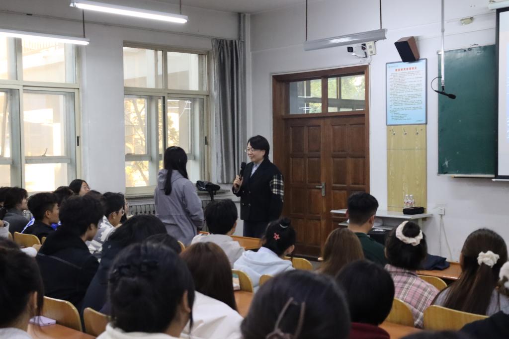 项东方老师主要从四个方面进行讲述,她指出中国自古以来就是礼仪之邦,作为新时代青年,应高度重视日常生活中的礼仪规范。她结合实际案例讲解礼仪的定义与原则,强调文明礼仪在校园生活及未来发展中的重要意义,同时结合行为规范和礼仪修养的养成,向同学们提出三点建议:一是要注重仪容仪表,保持整洁得体。着装要符合场合要求,不可过于随意和夸张;二是要注意言谈举止,使用文明用语,做到“站如松,坐如钟,行如风”,塑造有风度有内涵的个人形象。三是要提升自我修养,学会尊重他人,了解并遵守各种场合的行为规范,不断提升自己的礼仪素养。现场气氛热烈,学生们全神贯注地聆听并积极参与到讨论和互动环节。