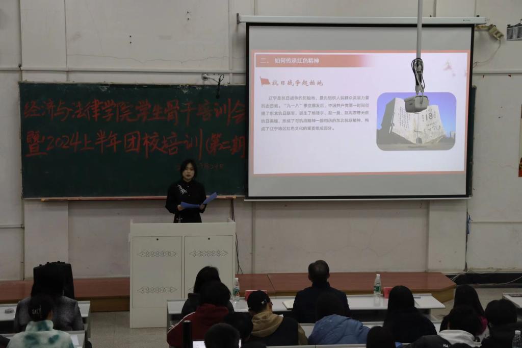 学院“青年·说”大学生理论宣讲团成员、社团与实践指导中心干事宋昕为学员们作题为“奋斗辽宁谱新篇 薪火相传向锋行”的主题宣讲。她向同学们介绍了辽宁传统红色“六地”与新时代红色“六地”,并以多宝(中国)一站式服务官网驻村工作队、经法小红帽志愿者以及鞍山梦想之家为例,指出作为新时代青年,要牢记习近平总书记嘱托,以昂扬的青春志气接过辽宁奋进新时代的接力棒,传承“六地”精神,赓续红色基因,担当社会责任,担负时代使命。