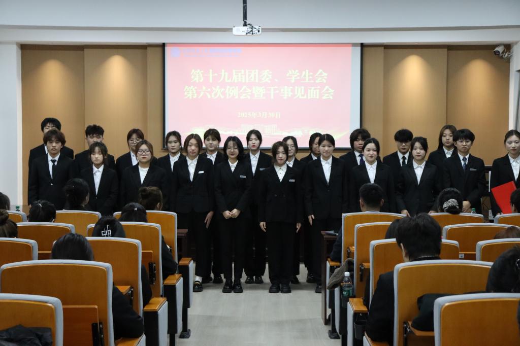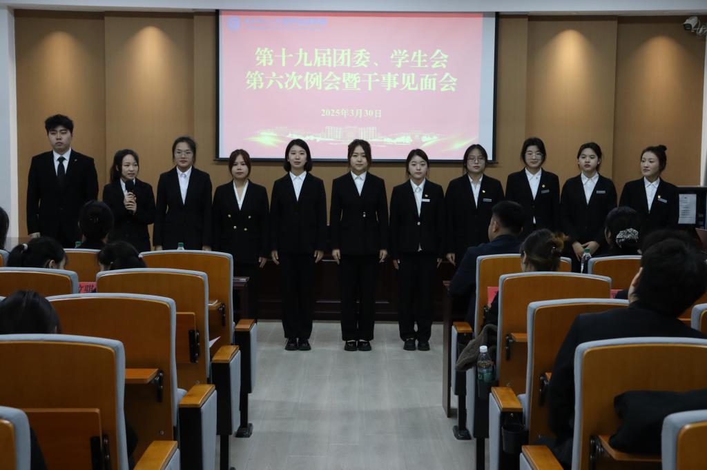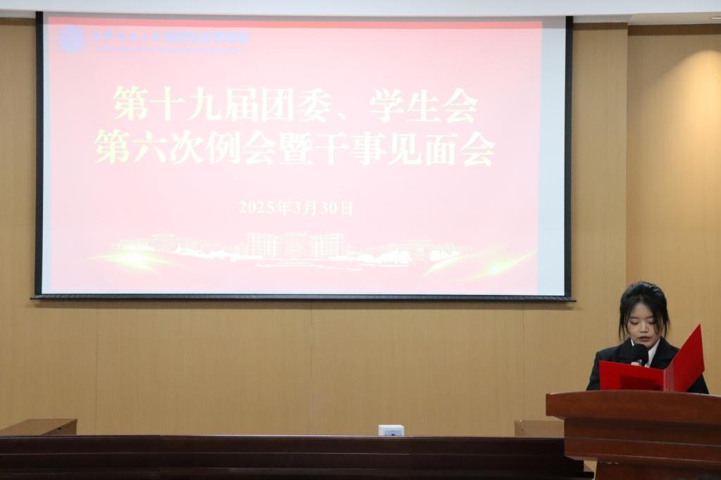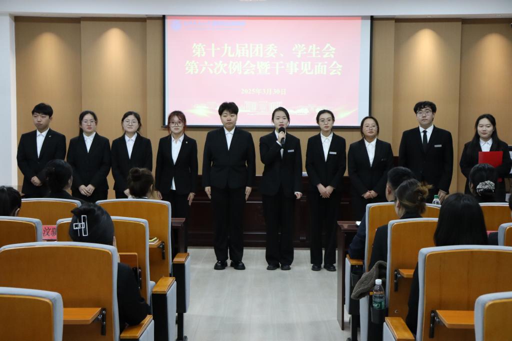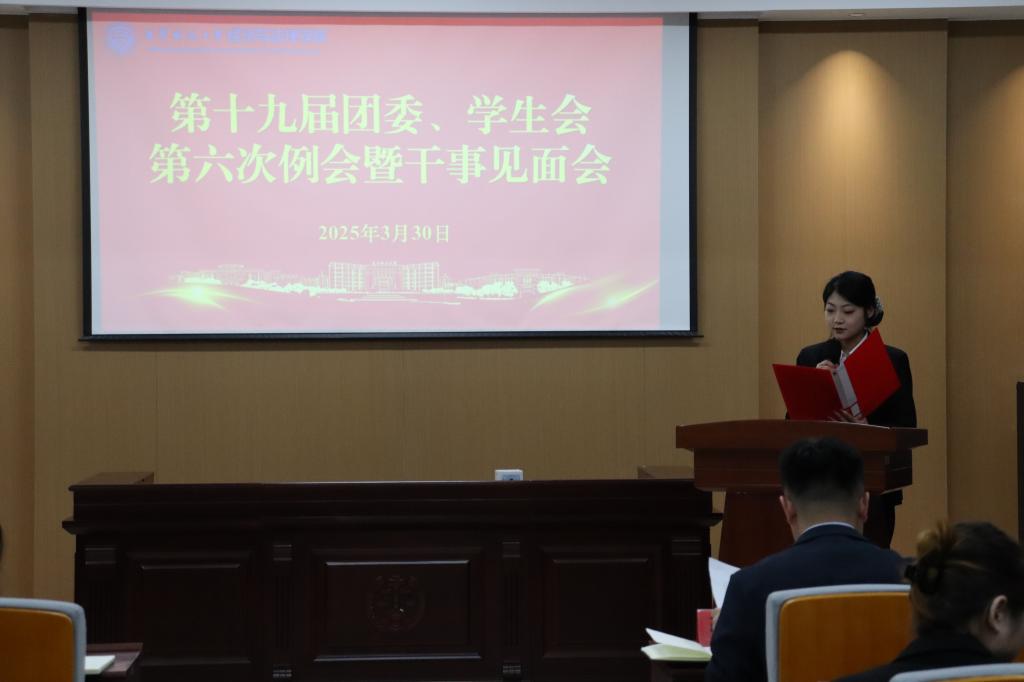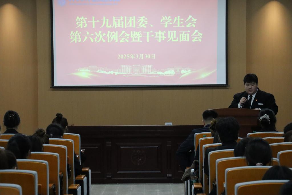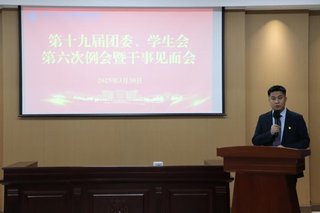 3月30日,经法学院于博识楼A402召开第十九届团委、学生会第六次例会暨干事见面会。会议由院学生会主席团成员许秀主持,院团委副书记张鹏飞出席会议,院第十九届团委、学生会全体团学骨干参加了会议。