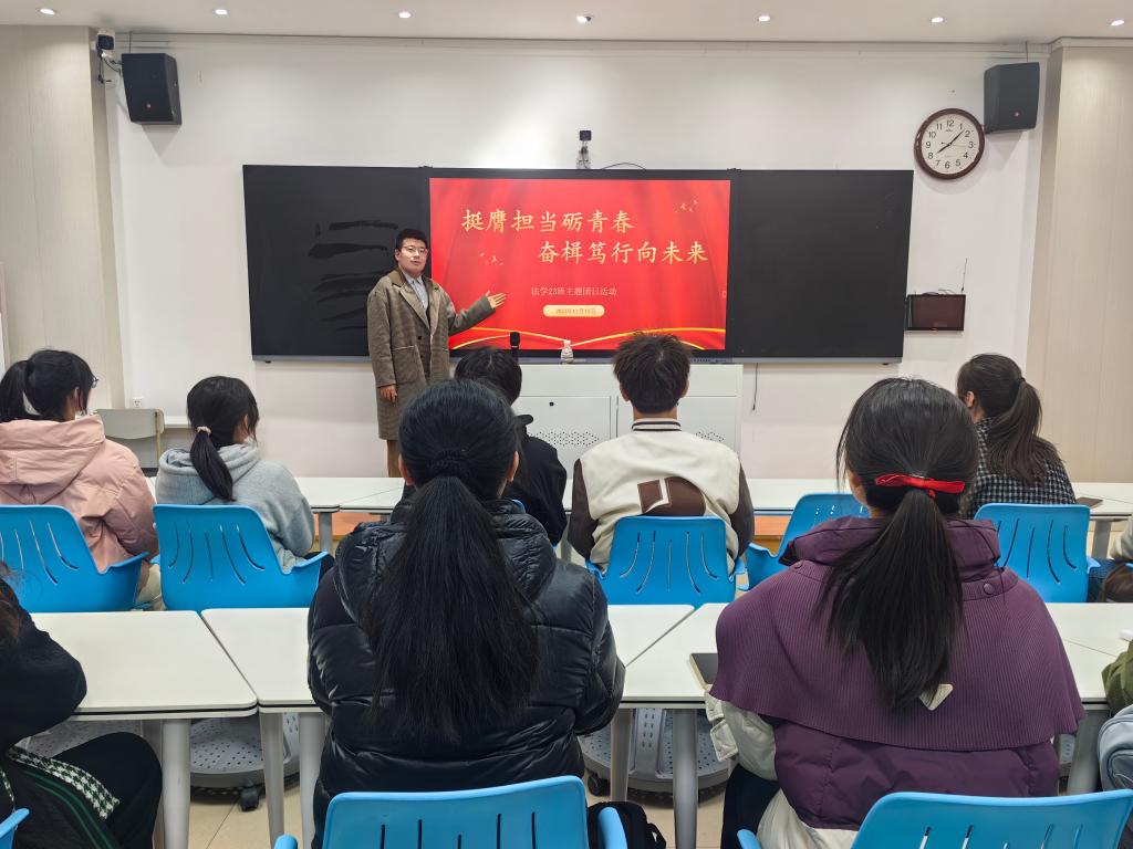 为深入挖掘青年担当精神内涵,培养新时代有为青年和辽宁新时代“六地”奋斗者,12月16日,经法学院组织法学23班团支部开展“挺膺担当砺青春,奋楫笃行向未来”主题团日活动。此活动特别邀请了学院团委副书记张鹏飞老师莅临指导,法学23团支部共计40名团员和青年参与其中。