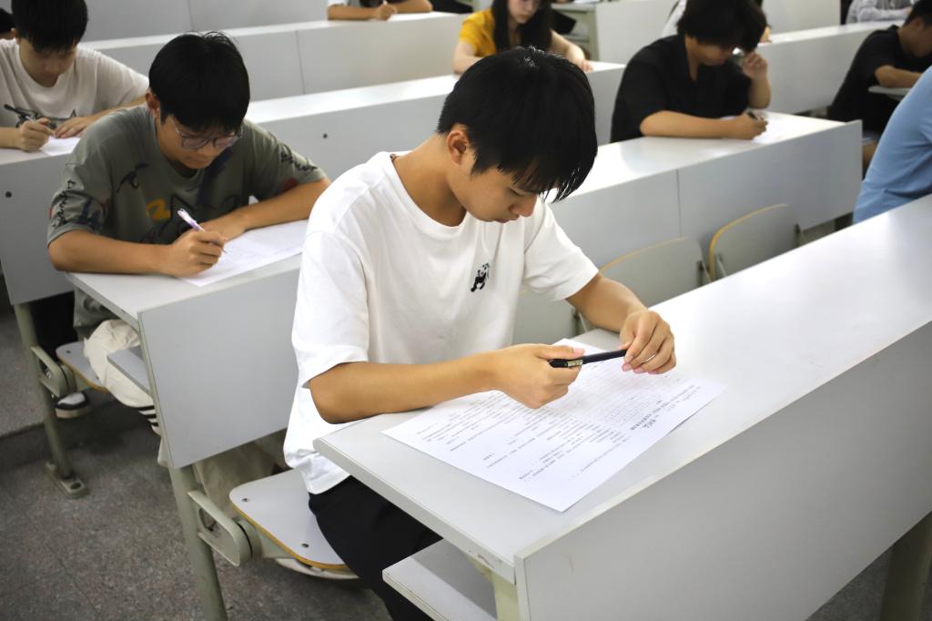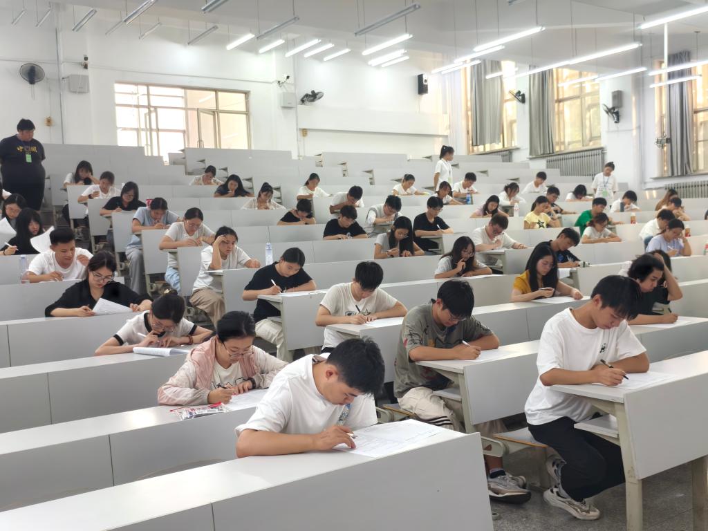 9月3日下午,经法学院于博学楼C102开展2025年“学宪法 讲宪法”宪法素养竞赛。学院团委书记张鹏飞及6名团学骨干担任本次竞赛监考员,学院近100名学生参加竞赛。