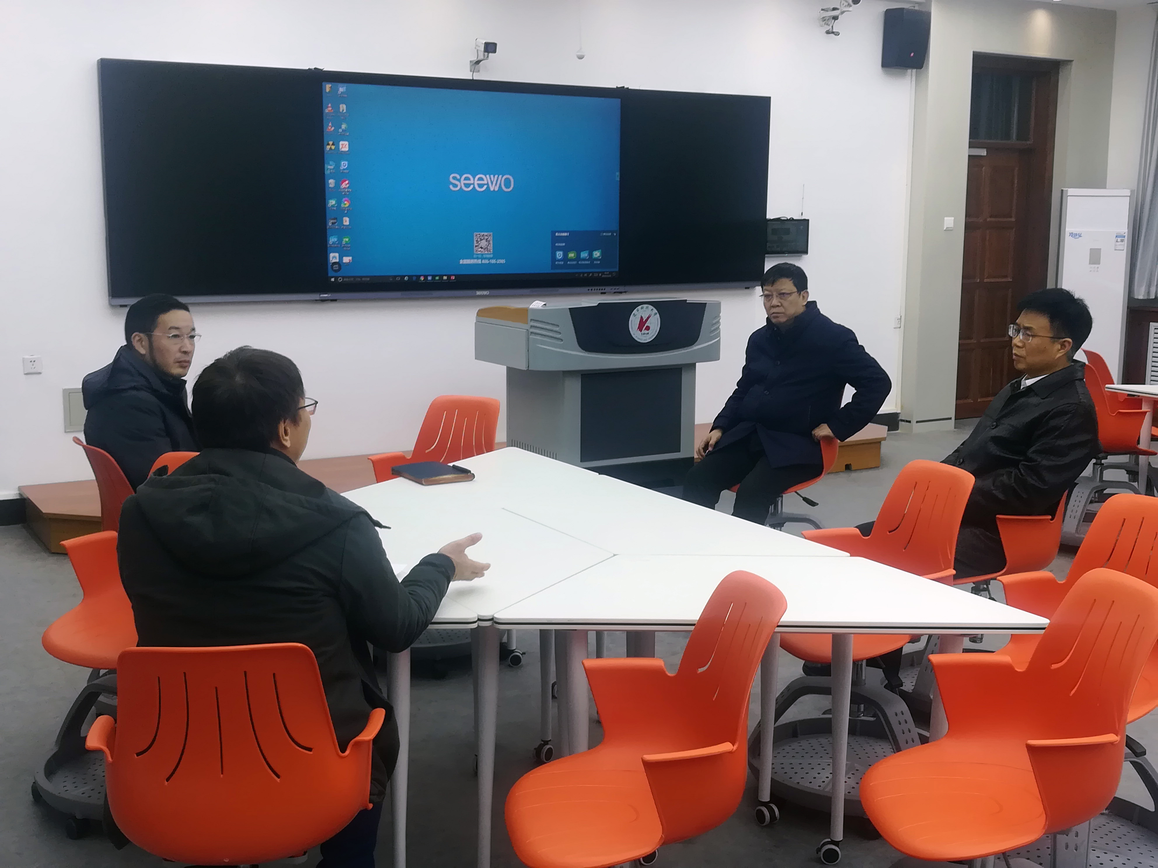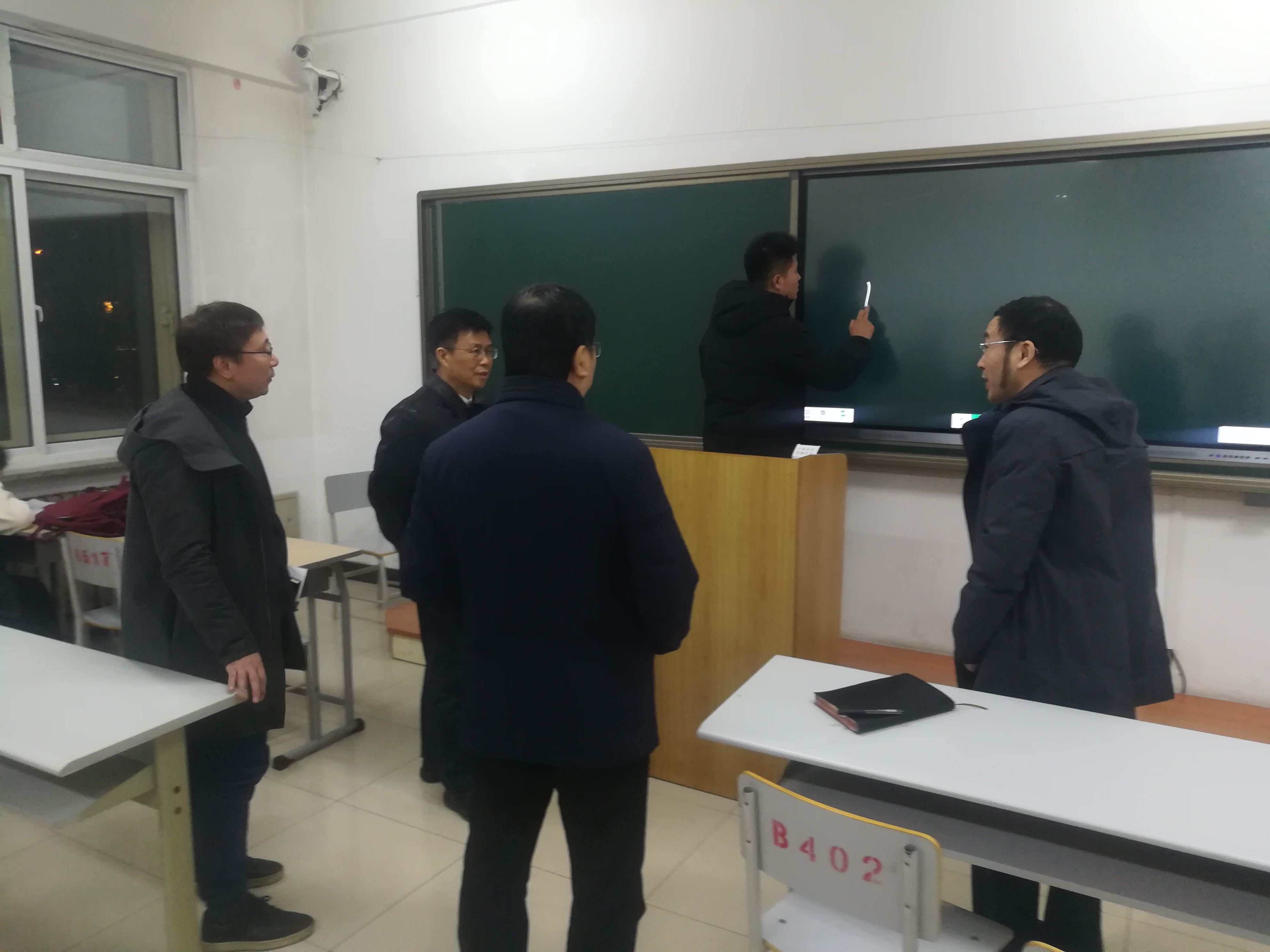 12月11日,多宝官网党委书记李平、校长张志强在教务处负责同志陪同下来到博学楼新建成的智慧教室,听取了教务处同志对智慧教室的建设情况。