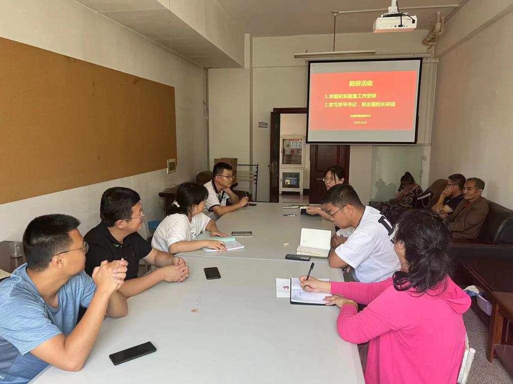 2023.9.12,地点:明信楼331 内容:学期初实验中心工作安排及学习李平书记、张志强校长讲话