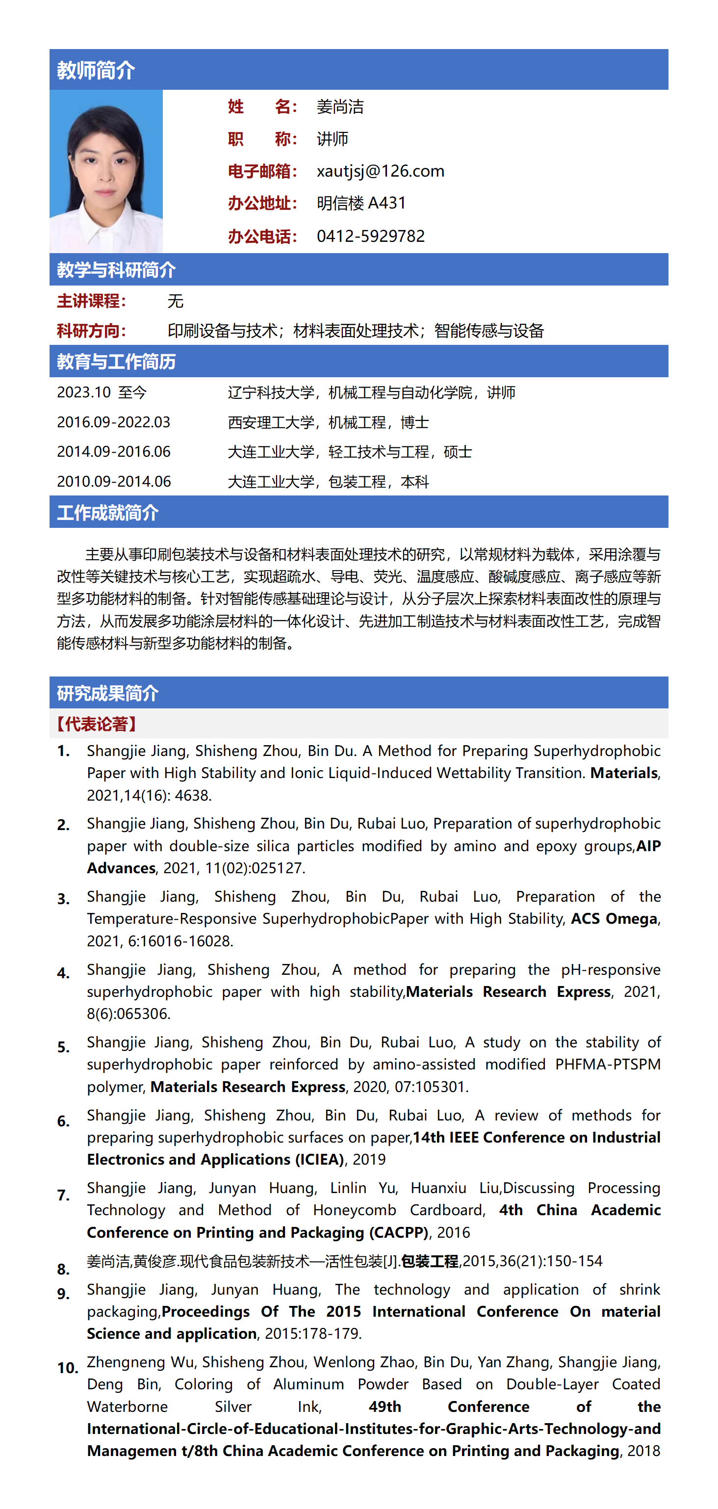 姜尚洁(讲师)