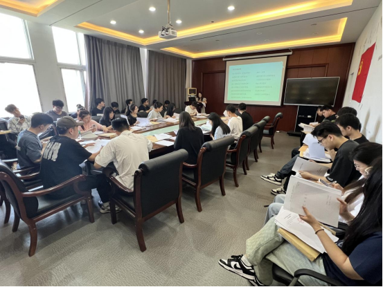 会议伊始,全体党员面向党旗,重温入党誓词。随后在座谈交流环节中,毕业生党员和入党积极分子依次发言,分享在校期间的成长感悟并为同学们献上祝福语。最后学院党委组织员刘晓雪讲解了党员组织关系转接的具体流程、转接方式和注意事项,并带领全体党员对照党员档案归档的十余项材料逐项自查,就党员们存在疑惑的问题逐一解答
