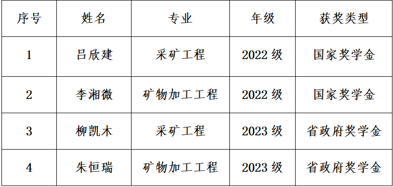按照学校要求,矿业工程学院组织开展2024-2025学年度国家(省政府)奖学金评定工作,经矿业工程学院国家(省政府)奖学金评审工作小组投票推荐,名单如下: