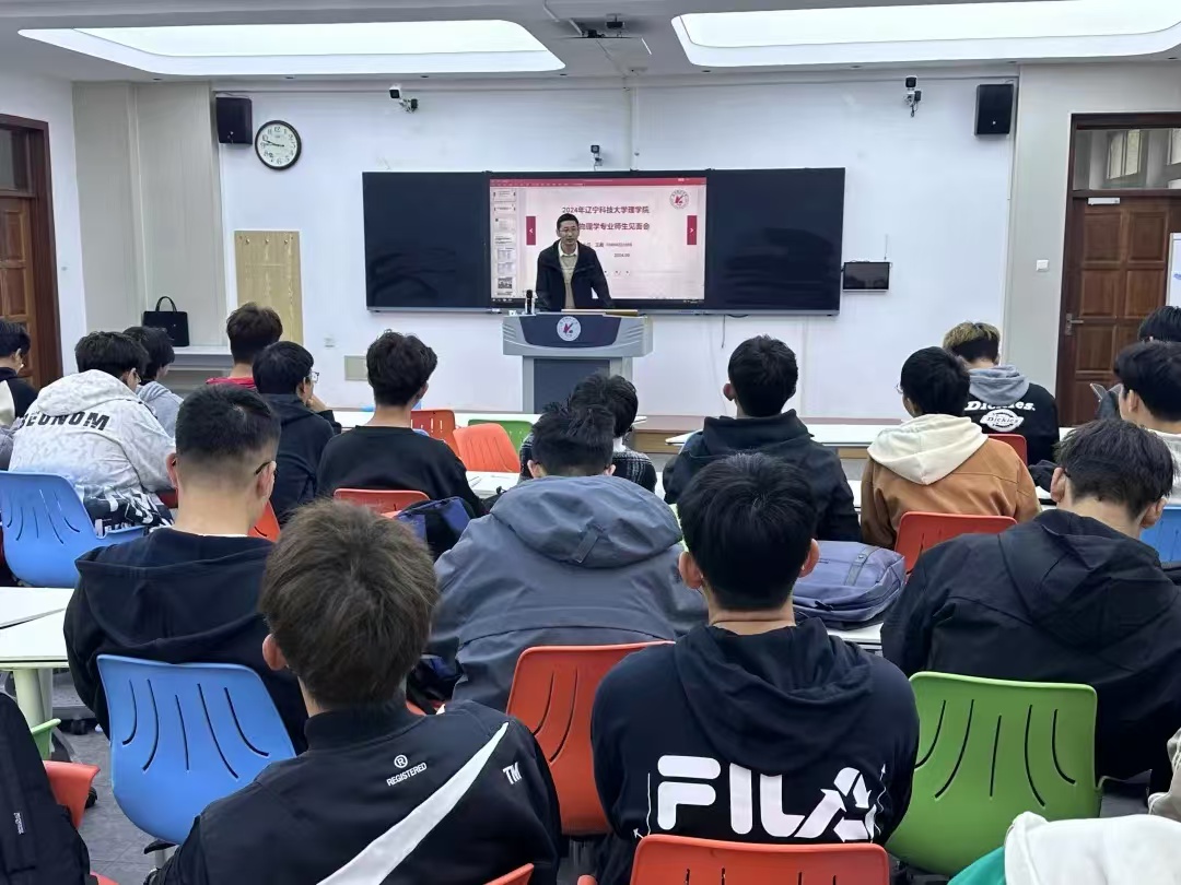 10月,理学院各系主任相继举办新生入学教育活动,旨在帮助大一新生更好地适应大学生活,深入了解各专业发展前景及就业方向。数学系主任赵健老师、光电系主任贾红宝老师和物理系主任王彪老师等各位领导、老师以及全体新生参加了本次活动。