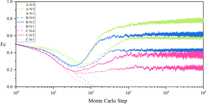 本论文重点阐述了个体的互动伴随着情绪的变化,情绪会影响人们的决策,从而影响群体中合作的演变。因此,考虑如何在游戏中运用情感以促进合作是非常重要和有意义的。然而,情绪在互动中并不受到单方面的影响。它包括个体自身的情绪和他们对外部情绪的接受程度,以及外部情绪给个体带来的冲击。本文提出了一种基于囚徒困境的新模型,充分考虑内外因素对情绪变化的影响以及双方对合作的比例。模拟结果表明,情绪稳定性在促进合作方面更为有效。换句话说,当个体自身情绪连续性的比例越高,个体对邻居情绪的接受程度越少时,合作就越容易得到促进,前者对合作的影响就越大。综上所述,这些结果可能在某种程度上为如何应用情绪变化的条件提供了一个视角。
