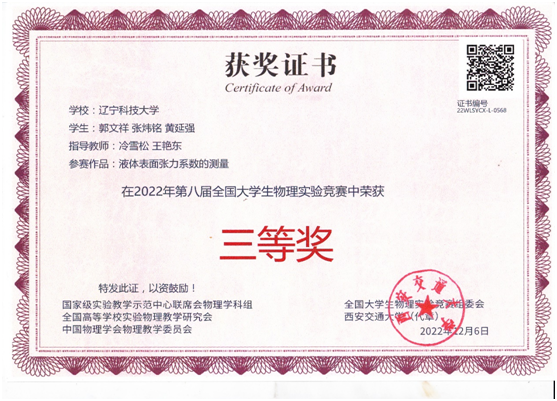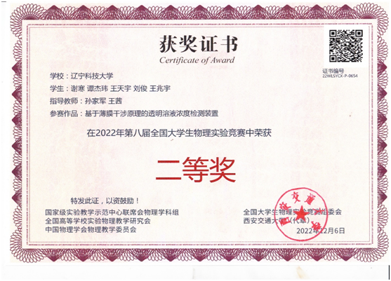 通过校内预赛,我校共选派3支队伍,参加于2022 年11 月26-27日举行的决赛,受疫情的影响,决赛以视频会议形式举行,经过角逐,我校学生获奖二等奖1项、三等奖1项、优秀奖1项。其中,由孙家军等教师指导学生谢韩等荣获二等奖,由冷雪松等教师指导学生郭文祥等荣获三等奖,由史韡朝等教师指导学生陈林伟等荣获优秀奖。
