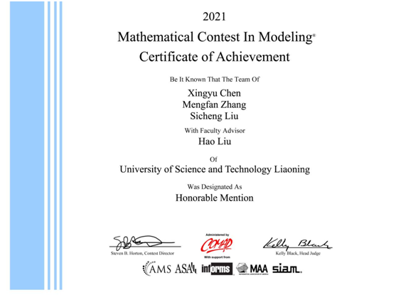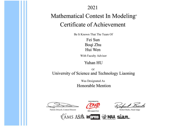 2021年2月5日,在教务处、理学院精心组织下,我校共有来自全校不同学院的将近百名学生组成了30支代表队参赛。其中在刘昊等竞赛经验丰富的教师悉心指导下,经过4天连续奋战,荣获二等奖1项,三等奖24项。