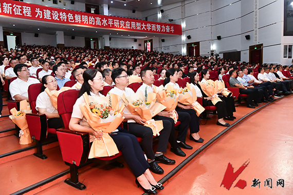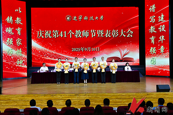 9月10日,多宝官网庆祝第41个教师节暨表彰大会在校礼堂举行。校领导、教职工及学生代表参加会议。会议由党委副书记孙晓华主持,党委常委、副校长宋怡林宣读表彰名单,党委副书记、校长胡军讲话。