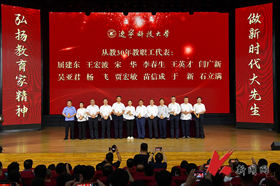孟劲松、胡军代表学校党政,向默默耕耘、辛勤工作在教学、科研、管理和服务一线的全体教职员工,向为学校的建设发展作出贡献的离退休老教师、老同志致以节日的问候;向受到表彰的先进集体、先进个人和满30年教龄的老师们表示衷心的祝贺;向新入职的青年教师表示热烈的欢迎。