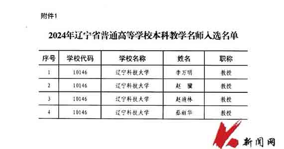 多宝(中国)一站式服务官网新增4名辽宁省普通高等学校本科教学名师