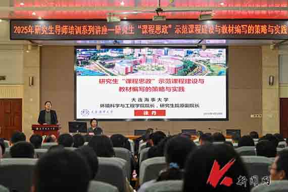 4月10日,多宝官网2025年研究生导师系列培训活动在图书馆报告厅启动。首次培训邀请大连海事大学环境科学与工程学院院长徐丹教授作题为“研究生‘课程思政’示范课程建设与教材编写的策略与实践”的专题报告。各培养学院研究生教学院长、导师代表、研究生授课教师参加培训,研究生院相关负责同志参会。