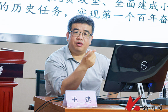 讲座中,王建围绕“历史性变革与新的历史方位”“社会主义现代化强国的战略安排”“新时代青年的使命担当”三个方面,深刻阐释了党的百年光辉历程下青年使命担当的历史脉络,以及在新时代新征程中青年担当作为的具体表现。他从新时代十年的三件大事出发,以“中国经济进入新常态”“全面从严治党成效卓著”“中国首次面对新兴大国与传统守成大国的矛盾”三个方向,系统解读了党的二十大报告的主体框架。他以时间为线,通过对“习近平总书记30年两步走的战略安排”的细致讲解,向同学们介绍了社会主义现代化强国的战略安排。他希望同学们担负起新时代青年的使命担当,树立正确的人生观、价值观,担当时代责任,做新时代的开拓者、奋进者。
