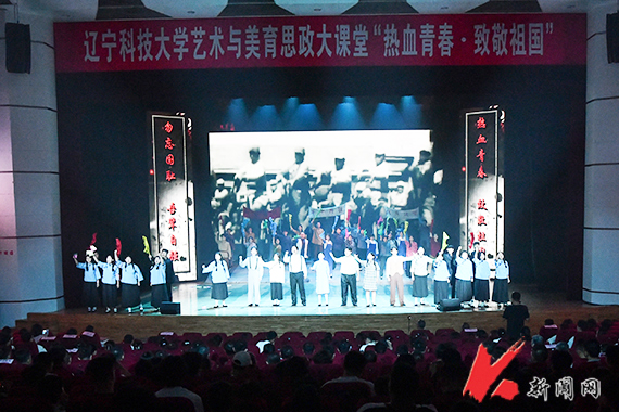 随着手摇上课铃声响起,“今课堂”带领师生们在80年的光阴中穿梭往返,回味那些难忘的峥嵘岁月和奋斗不息的青春。经典抗日歌曲《松花江上》,以苍凉旋律唤醒“勿忘国耻”的集体记忆。《救亡进行曲》唱出了“天下兴亡,匹夫有责”的担当与爱国情怀,振奋人心、鼓舞士气。《弹起我心爱的土琵琶》《毛主席的话儿记心上》等红色经典影片中的插曲,传递出游击队员在艰苦环境中的坚强意志和乐观精神。波澜壮阔的中国抗战史,就是一部英雄史,快板表演《白山黑水英雄谱》歌颂了杨靖宇、赵一曼、赵尚志在中国人民艰苦卓绝的浴血奋战中,用鲜血和生命筑起拯救民族危亡、捍卫民族尊严的钢铁长城的英雄事迹。情景剧《出征》里,老槐村的热血青年挺身而出,挥洒青春,他们没有走上回家的路,但铺出了一条山河无恙、草木葱茏的路。配乐朗诵《英雄》深情豪迈,情感真挚地表达了英雄没有高低贵贱之分,只要背上有傲骨,只要胸中有担当,都可以成为这个伟大复兴时代响当当的英雄。压轴曲目《请党放心 强国有我》唱出青春最美的模样,铿锵誓言在舞台上空回响,将课堂气氛推向高潮。活动中,师生们深情演绎,铭记历史,缅怀先烈,弘扬伟大抗战精神,共同完成了一次关于信仰、关于理想、关于家国的深情对话,彰显新时代青年的使命担当。
