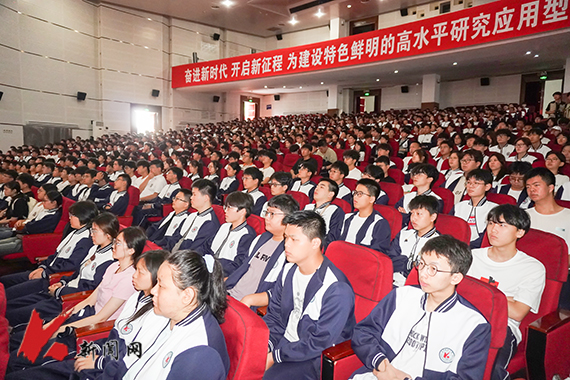 9月4日上午,多宝官网党委副书记、校长胡军在校礼堂以“弘扬科大人精神品格 以奋斗姿态追逐梦想 为中国式现代化建设贡献青春力量”为主题,为2025级新生代表讲授了一堂精彩纷呈的“开学第一课”。