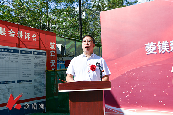 胡军在致辞中指出,该项目主体结构的顺利封顶是学校高质量发展进程中的重要里程碑,标志着学校在科研基础设施建设与高水平学科平台打造上迈出坚实一步。项目开工以来,学校与各参建单位迎难而上、紧密协作,攻克多重困难,为项目如期封顶筑牢基础。胡军强调,菱镁新材料产业是辽宁省重要支柱产业,对区域经济发展具有关键支撑作用。实训基地建成后,将成为全国唯一一个聚焦菱镁领域全产业链人才培养与科技研发的专业基地。这既是学校“十五五”时期夯基改革的重点任务、深化校企协同育人的创新实践,更是服务国家新材料产业发展战略的具体行动。基地投用后,将为材料、化工、机械等优势学科提供一流支撑平台,显著提升高素质应用型创新人才培养能力,推动教育链与产业链深度融合,为菱镁产业转型升级及区域经济高质量发展注入新动能。下一步,学校将全力推进项目后续建设,以更高标准、更实举措确保项目早日建成投用。