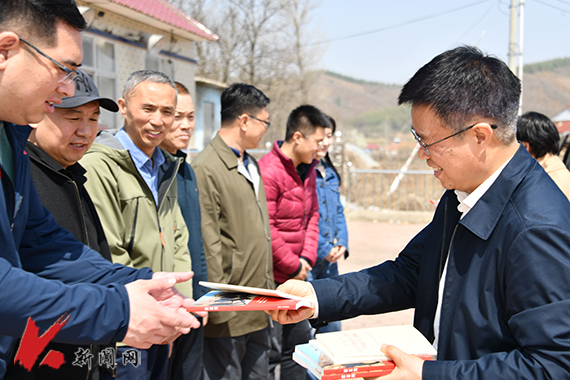 在山城村调研期间,李平、孙晓华一行与学校派驻岫岩的7名驻村干部召开了“话党建 担使命 建新功”驻村第一书记座谈会,并为驻村干部准备了主题教育相关书籍,供大家在工作之余加强理论学习。座谈会上,驻村第一书记汇报了驻村工作期间党建特色成果及存在的问题,分享了开展乡村振兴工作的亮点和成绩。李平对驻村干部近一段时间的工作表示肯定,代表学校对驻村干部取得的成绩和为助力乡村振兴做出的贡献表示衷心的祝贺和感谢。李平指出,驻村干部作为学校和定点帮扶村之间的桥梁与媒介,使命光荣、任务艰巨。要充分认识大兴调查研究的重大意义,立足本职工作,开展好调查研究,提振驻村帮扶精气神,以昂扬姿态破困局、开新局,奋力推进帮扶村各项事业高质量发展。
