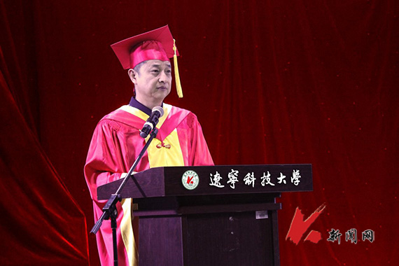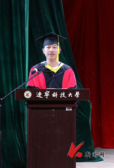 教师代表窦金孝发言,他希望来华留学生们恪守“博学明德,经世致用”的校训,弘扬“勤奋向上,求实创新”的校风,做一个有崇高理想和高尚品格的人,做一个学识广博、勇于创新、敢于拼搏的未来人,为中外合作交流搭好桥梁和纽带。
