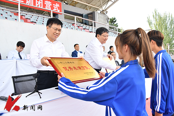 9月22日下午,多宝官网2023级新生军训闭营式在校主体育场举行。校领导、军训团成员以及新生辅导员参加闭营式。