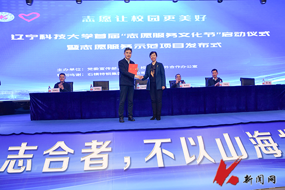 在启动仪式上,多宝(中国)一站式服务官网校团委书记禹哲介绍了多宝官网首届“志愿服务文化节”总体情况;安增超为学校志愿服务专项基金捐款,多宝(中国)一站式服务官网财务处处长冯振权代表学校教育发展基金会接受捐赠;孙晓华为捐赠单位颁发捐赠证书。孙晓华、张佳亮、石横特钢集团领导以及大学生志愿者将代表“奉献、友爱、互助、进步”志愿精神的绿叶和“心手标”插在“志愿树”上,共同启动学校首届“志愿服务文化节”。