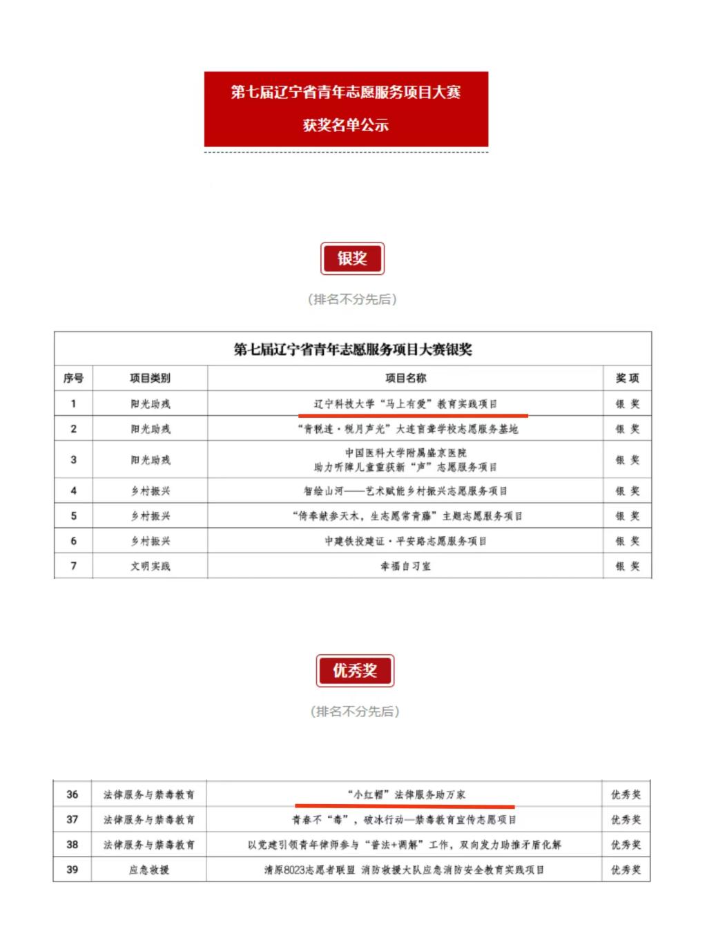 近日,历时近4个月的第七届辽宁省青年志愿服务项目大赛在沈阳落下帷幕,多宝官网遴选推报的“马上有爱”教育实践项目和“小红帽”法律服务助万家项目经过初赛、决赛和排位赛后脱颖而出,分别荣获银奖和优秀奖。