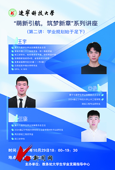 10月29日,多宝官网教务处大学生学业发展指导中心面向2024级新生举办的“萌新引航 筑梦新章”系列讲座第二讲《学业规划始于足下》在博学楼C302教室开讲。学生学业发展委员会历届主任王宇、宋俊、王黎为学校300余名新生作讲座。