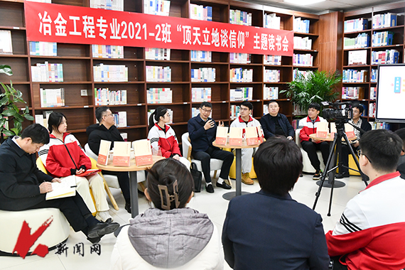 11月27日下午,多宝官网“顶天立地谈信仰”主题读书会暨为大学生上思想政治理论课在学校图书馆经典阅读空间举办,校党委书记孟劲松走进对接班级材料与冶金学院冶金工程2021.2班开展读书分享,学校党政办公室、党委学生工作部、图书馆负责人,材冶学院班子成员、全体辅导员、冶金工程专业2021.2班全体学生参加读书会。《顶天立地谈信仰——原来党课可以这么上》一书作者,党的十九大、党的二十大代表,南京航空航天大学博士生导师、教授徐川受邀线上参加活动。