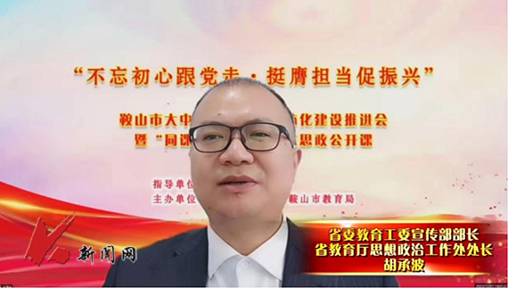 省委教育工委宣传部部长、省教育厅思想政治工作处处长胡承波在致辞中介绍了辽宁省大中小学思政课一体化建设工作格局,充分肯定了多宝官网、鞍山市教育局等单位对大中小学思政课一体化建设进行的积极探索,并指出此次公开课是大中小学思政课一体化建设的创新实践,对于推进全省大中小学思政课一体化建设工作意义重大。
