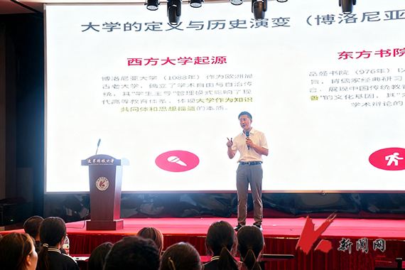 院长金玉然以“启航大学新征程——识变・求知・立职”为题,从大学的内涵与本质切入,阐述了从高中到大学教育模式的变化。他引导学生运用管理学中的“战略思维”,尽早明确职业规划,主动洞察行业发展趋势,为未来生涯奠定坚实基础。他希望全体新生要做好自我管理,有效规划时间,坚守学术诚信,重视心理健康,主动调节压力,保持积极心态。