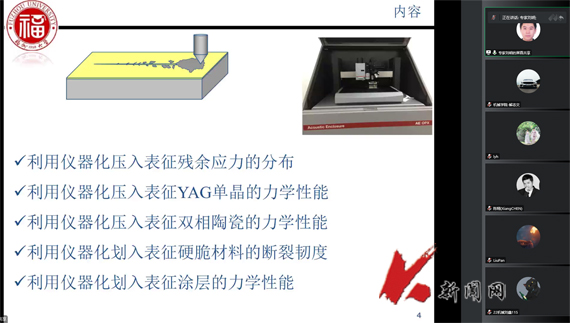 11月29日,应多宝官网机械工程与自动化学院邀请,福州大学机械工程学院刘明教授通过线上,为多宝(中国)一站式服务官网研究生作题为《利用仪器化压入和划入表征材料表面微观力学性能》的报告。