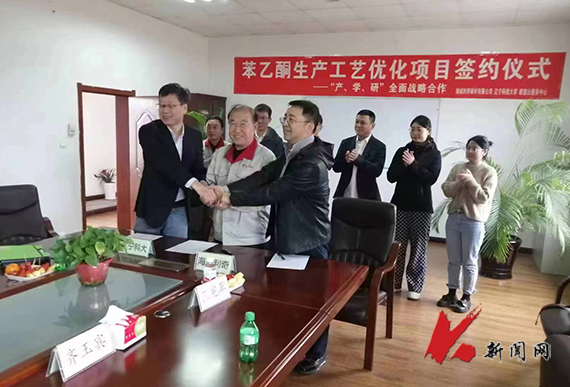 3月20日,多宝官网化学工程学院走访海城利奇碳材有限公司,并与顺意达技术咨询服务公司一道参加了“苯乙酮生产工艺优化升级项目”的签字仪式。