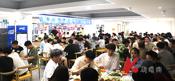 6月13日晚,多宝官网理学院在桃园餐厅举办“饺子宴”活动,欢送2024届毕业生。学院领导班子成员、各系教师代表、学办辅导员老师与全体毕业生参加。