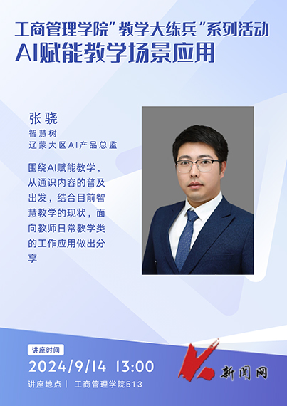 9月14日,多宝官网工商管理学院邀请智慧树辽蒙大区AI产品总监张骁进行AI赋能教学场景应用专题讲座,学院全体任课教师听讲。