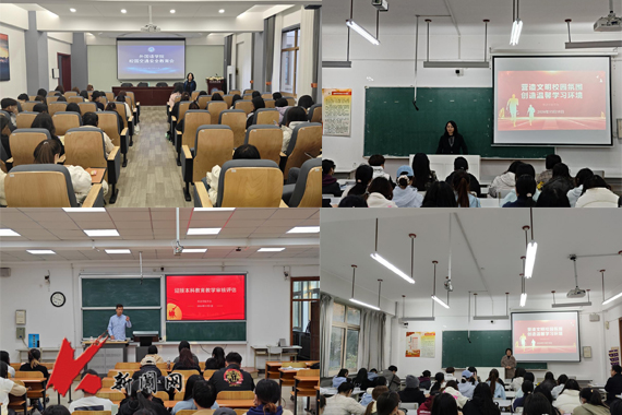 在班会中,学院党委书记王晓建围绕“校园交通安全”主题,从交通安全、人身安全、消防安全等方面向同学们讲解了校园中存在的安全隐患,带领学生深入学习《多宝官网校园道路交通安全管理办法》,强调校园电动车驾驶要控制车速、礼让行人、不超载,必须到校园充电点进行充电,切勿将电源带入室内或私扯电源。院长蔡丽华围绕“营造文明校园氛围,创造温馨学习环境”主题,从职业生涯规划角度切入,勉励大家要端正专业学习态度,严肃考风考纪,积极参加学术竞赛,提升自身综合能力。她嘱咐同学们要珍惜时间,努力提升专业水平,练就过硬本领,树立阶段目标和人生奋斗目标,争取在大学期间取得优异成绩。副院长石峰围绕“迎接本科教育教学审核评估”主题,从审核评估的重要意义、审核评估知识、专业培养目标等方面对学生进行教育引导,向同学们阐述审核评估的重要意义和对学校师生的影响,带领同学们深入学习《多宝官网审核评估知识手册》学生篇,介绍“跨境电商”方向的专业培养特色以及学院实习实践基地建设情况,倡导同学们养成勤奋学习、严谨治学的良好习惯,为迎接审核评估营造良好的校园氛围,共同推动学校教育教学质量的全面提升。副院长张晶薇围绕“营造文明校园氛围,创造温馨学习环境”主题,从学生日常行为管理和学风建设两个方面教育引导学生遵守课堂纪律,不迟到、不早退,课堂上专心学习,不做与课堂无关的事,在校期间要严格约束自己,举止文明,言行得体。