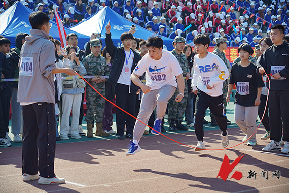 一次次跃起,一次次追逐,交错变换的步伐奏响动人的乐章,彩绳翩飞起舞,参赛者聚精会神,为共同的目标拼搏奋斗。