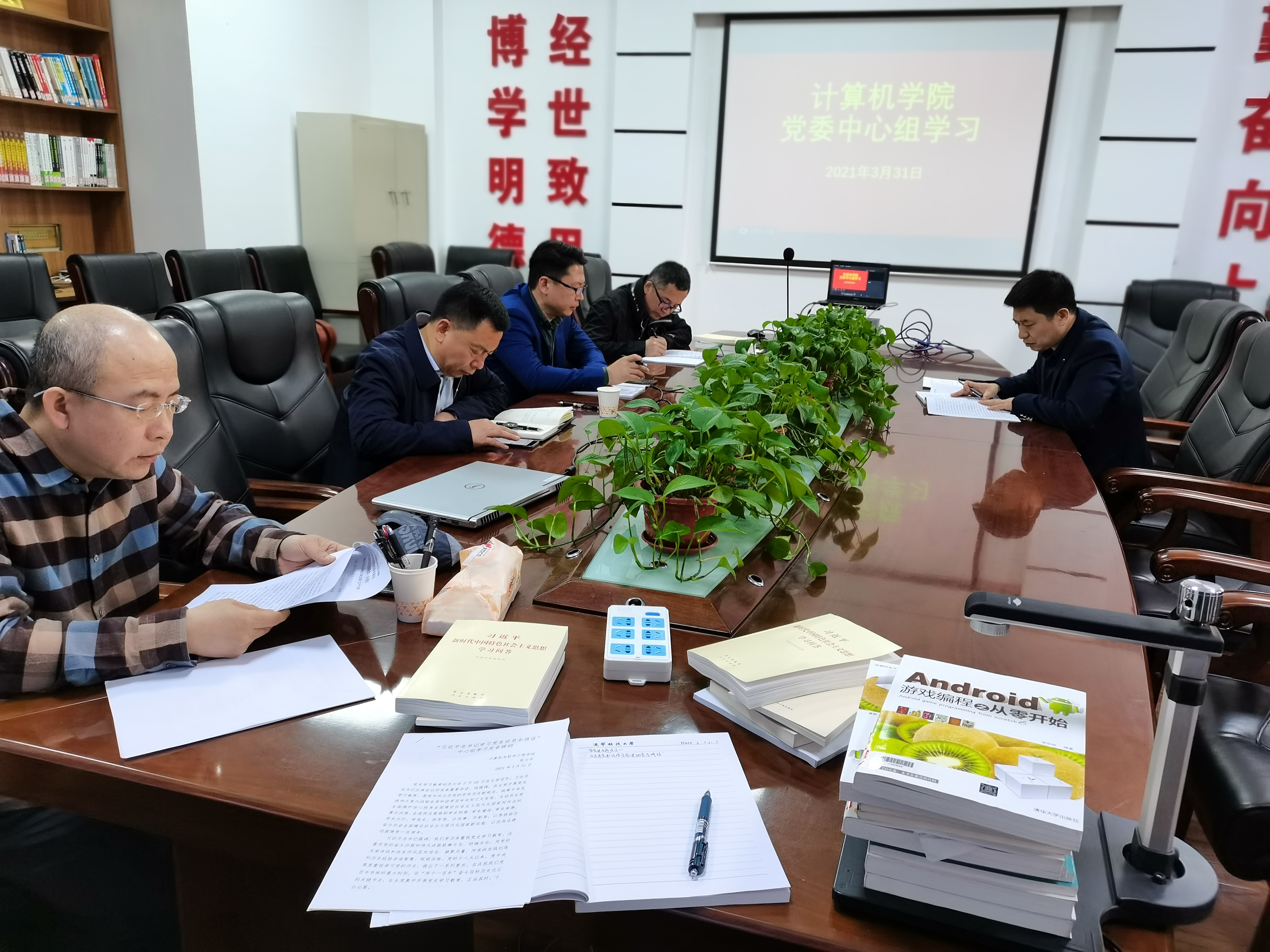 2021.3.31日,计算机学院党委理论学习中心组以党史学习教育为主题召开学习大会,学习了习近平总书记在党史学习教育动员大会上的讲话。学院党委理论学习中心组全体成员参加会议。学院党委书记陶润成主持会议并发言。