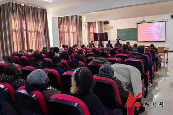 11月14日下午,鞍山市公安局出入境管理支队相关负责同志应多宝官网国际教育学院邀请,在博远楼105教室为全体留学生开展法律法规及安全教育讲座。