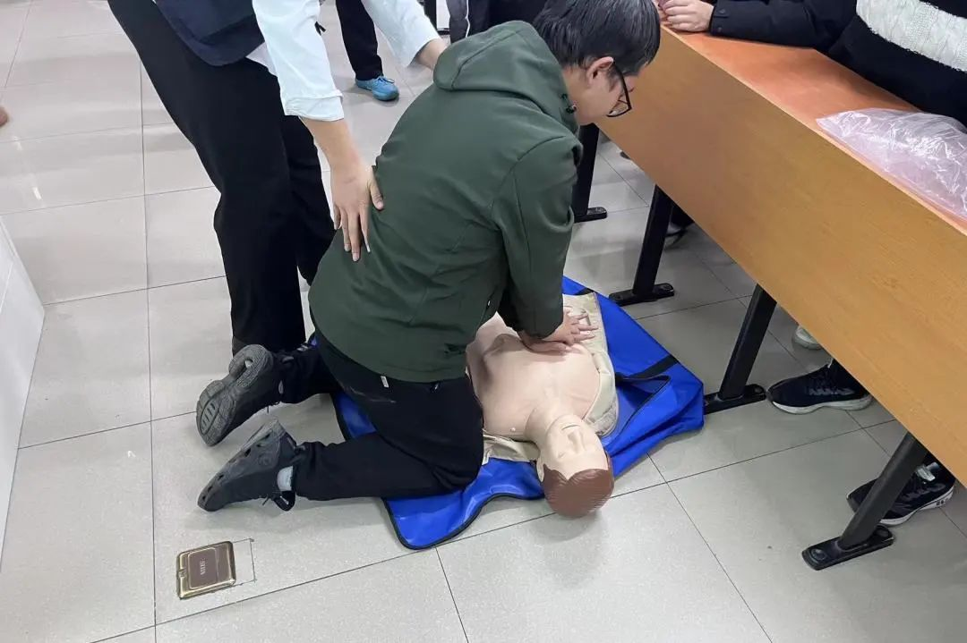 宣讲结束后,同学们还利用模型假人体验心肺复苏操作,加深了大家对心肺复苏的认识与理解。