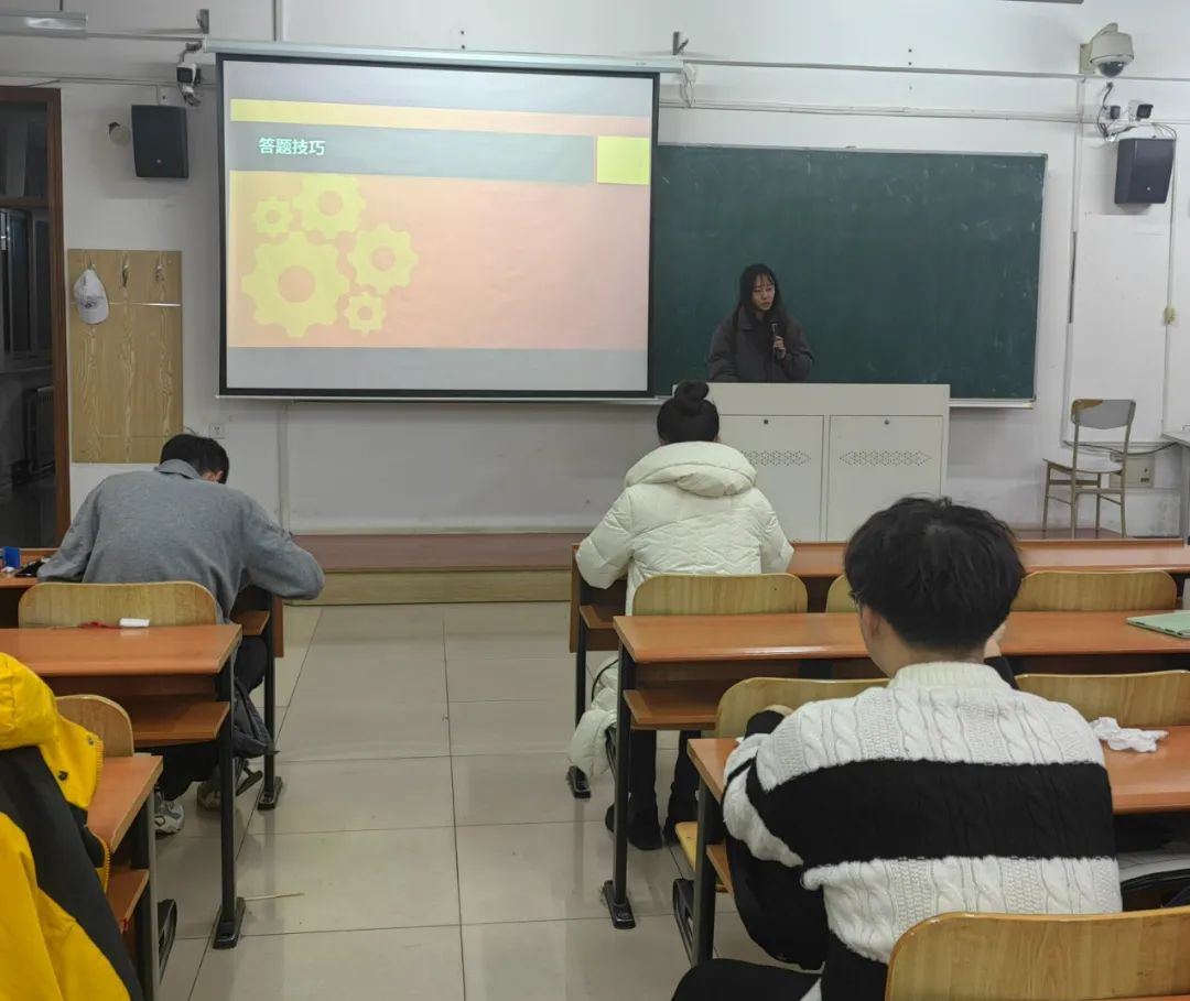 诚信感恩教育班会后,大二优秀学生代表上台与同学们进行了四六级经验讨论,分享了他们各自的备考以及答题经验,并与同学们强调了英语四六级证书对未来考研求职的重要性。