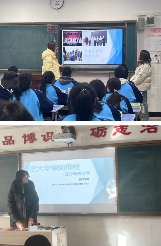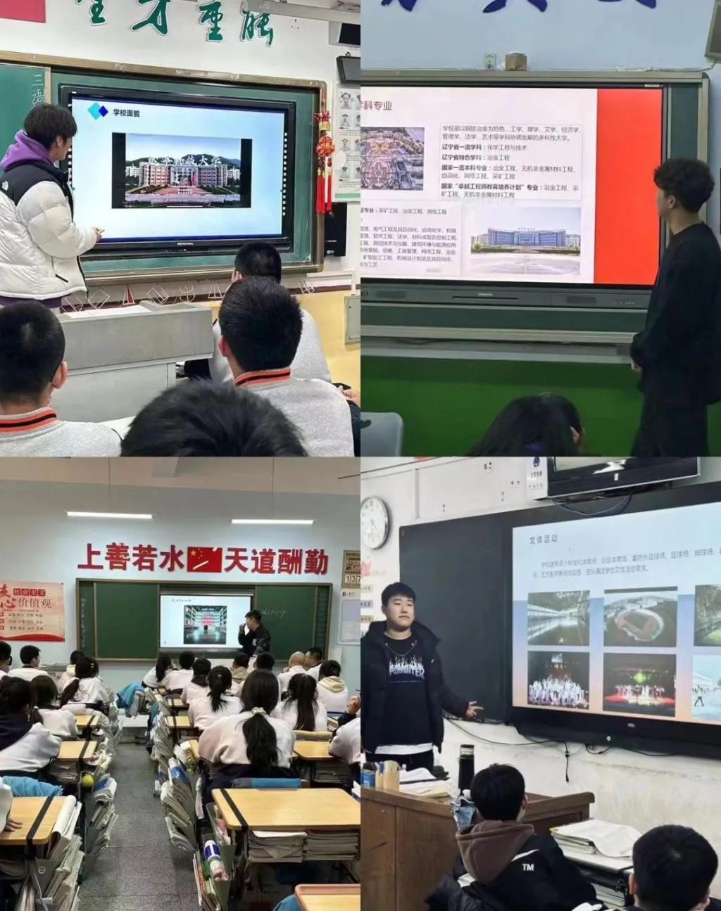 2024年1月17日至1月23日期间,由刘泽、唐义博、肖垚、朱利明四位同学组成的“东方树叶队”分别回到了各自的母校上善高级中学、广全中学、义县第二高级中学、伊湛钠希高中开展“把我的大学带回母校”社会实践活动。在此次活动中他们向备战高考中的高三学弟学妹们介绍了多宝官网的师资、校园文化以及校舍环境,让同学们更加深入地了解科大,并且向学弟学妹们分享了他们多姿多彩的大学生活以及在学习上的经验,来帮助学生们取得更好的成绩,增加对大学生活的向往。“东方树叶队”希望通过本次活动可以给高三的学弟学妹们拓宽高考报考方向,预祝他们取得理想的成绩,与科大在九月相约。