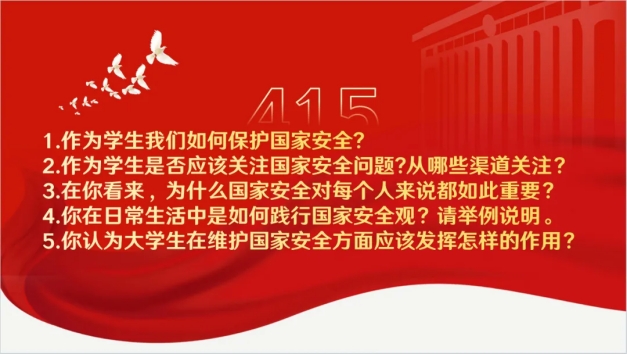 2024年4月,国际教育学院采用线上线下双线并行的方式开展了系列主题班会、国家安全知识采访以及国家安全知识调查问卷,并通过鼓励同学们制作国家安全海报等方式成功地向同学们普及了国家安全的相关知识。