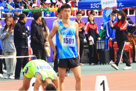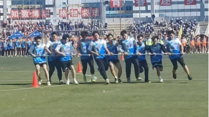 学生组男子10×400米决赛中国际教育学院以10:39.0的成绩取得第七名