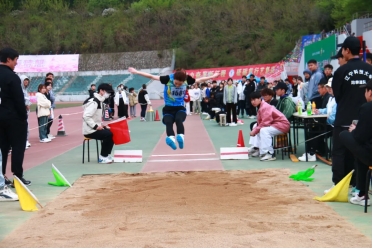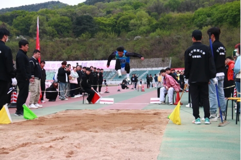 学生组男子跳远比赛中国际教育学院戴兴旺以5.68米的成绩取得第二名