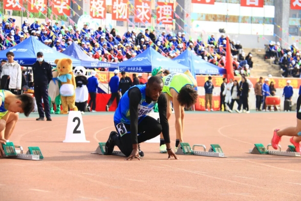学生组男子4×100米决赛中由唐义博、来华留学生MIRACLE组成的“国际联队”以50.0秒成绩取得第五名