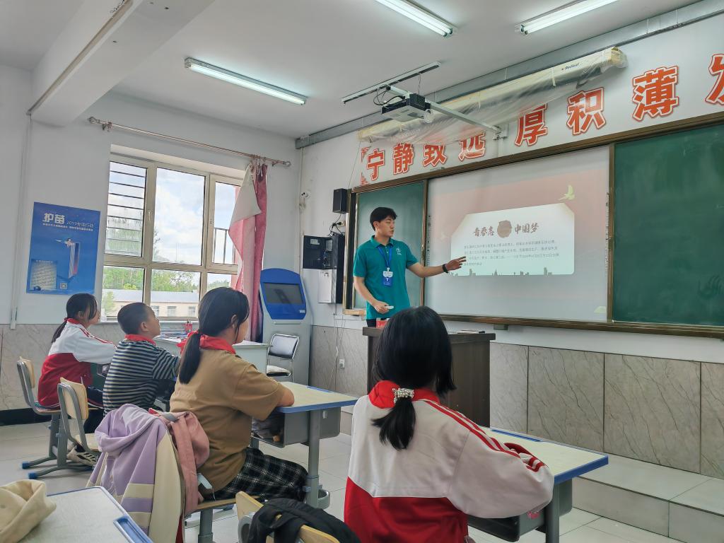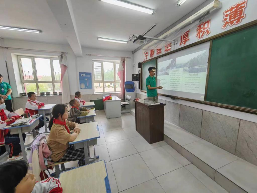 移动课堂上,学院大学生理论宣讲团成员张力中从五大连池市的红色资源和革命先烈的奋斗故事入手,讲授这座城市的历史经纬、红色基因和发展历程,号召“英雄土地”上成长起来的同学们要做“有理想、敢担当、能吃苦、肯奋斗”的新时代好青年;宣讲团成员张珺则从习近平总书记提出的“绿水青年就是金山银山”的重要论述入手,向同学们介绍爱惜环境、保护资源和节约粮食的重要性,并结合当地的地质特征讲解灾害预警、抗震救灾等方面知识,演示遇到突发状况时有效自我防护和逃生的技巧。同学们目光专注、认真听讲,不时将学到的知识记录在课本上。问答环节,现场热闹非凡,同学们积极举手、踊跃答题,并围绕自己好奇的内容不断提问,志愿者们穿梭在教室之中,在解答问题的同时,也为表现优异的同学送上经典读物、笔记本、笔袋等奖品。志愿者们还走进学生家中,详细了解他们在日常学习、生活中遇到的困难,并结合自身成长体会传授有针对性的“攻关秘籍”。