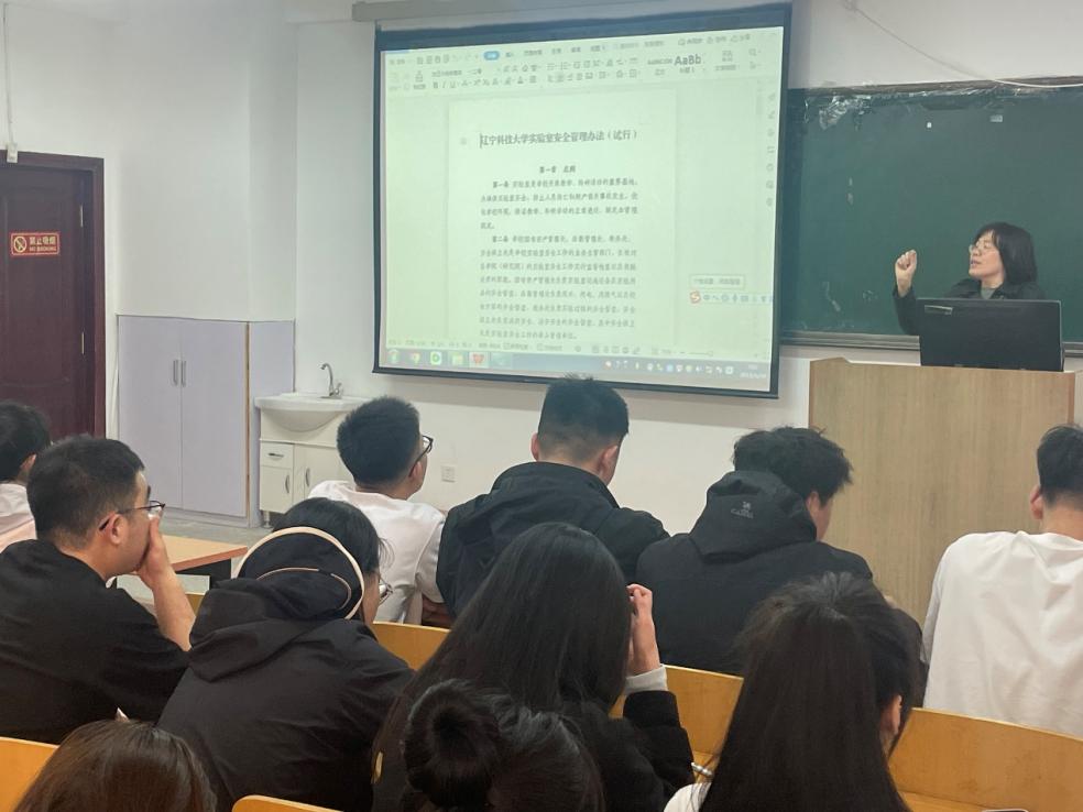 周晓平解读“八个凡是”、“六个一律”、“三不一要”安全提示,并领学《多宝官网实验室管理办法》《多宝官网消防安全管理规定》《多宝官网校园道路交通安全管理办法》等有关安全制度。安全教育班会上对研究生强调了以下几点要求:一是要认真学习实验室安全、消防安全、校园道路交通安全的规定,熟悉安全手册知识,并严格执行;二要加强对废气、废液、废渣和噪声的处理与排放的管理,严禁在实验室内大声喧哗、抽烟﹑吃食物和乱丢垃圾,禁止污染环境,禁止带无关人员进入实验室等,提升同学们安全意识;三要养成良好的行为习惯,使用危险化学品、放射性物品、特种设备要按规程操作,使用时应在教师详细指导下进行,采取必要的安全防护措施。