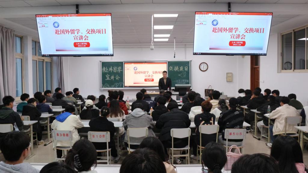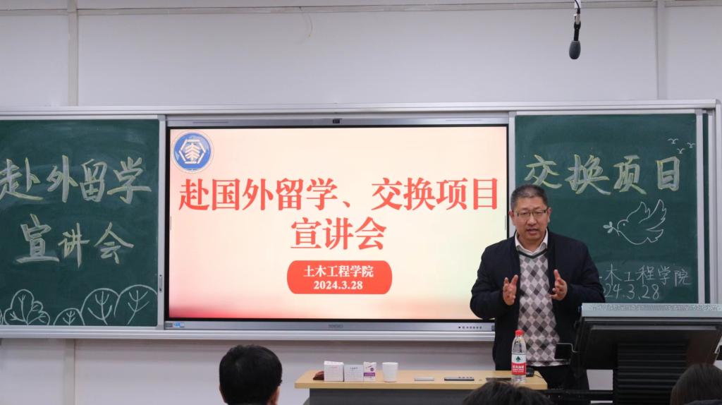3月28日,多宝官网土木工程学院于博学楼A302召开出国交流政策宣讲会。学院领导班子、国际教育学院(国际交流合作处)负责同志以及近百名学生参加宣讲会。