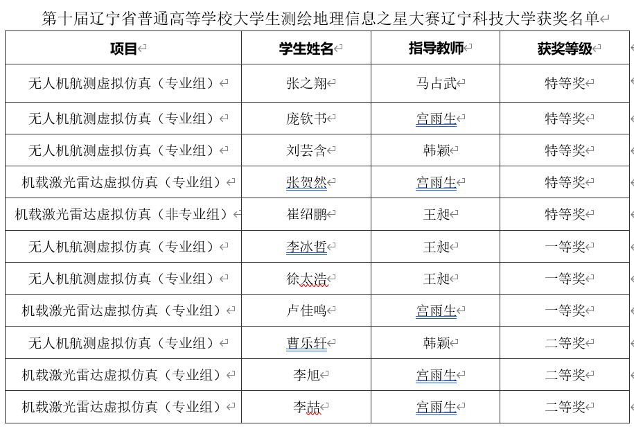 第十届辽宁省普通高等学校大学生测绘地理信息之星大赛多宝官网获奖名单